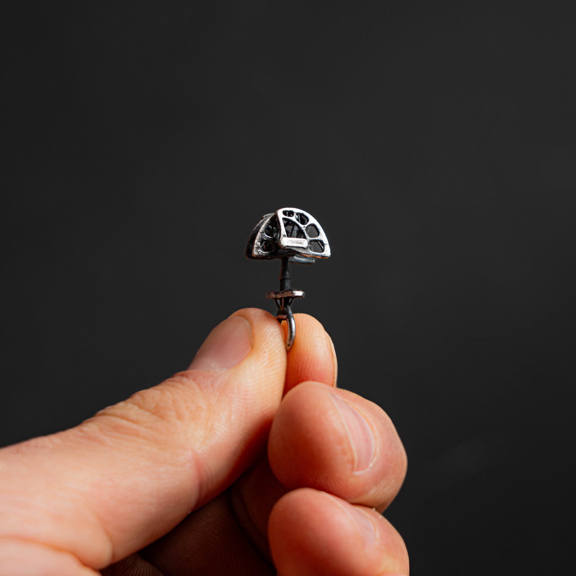 Este colgante en forma de friend captura la esencia de asegurar y confiar en la roca, forjado en plata 950 para quienes llevan la pasión por la escalada siempre cerca del corazón.